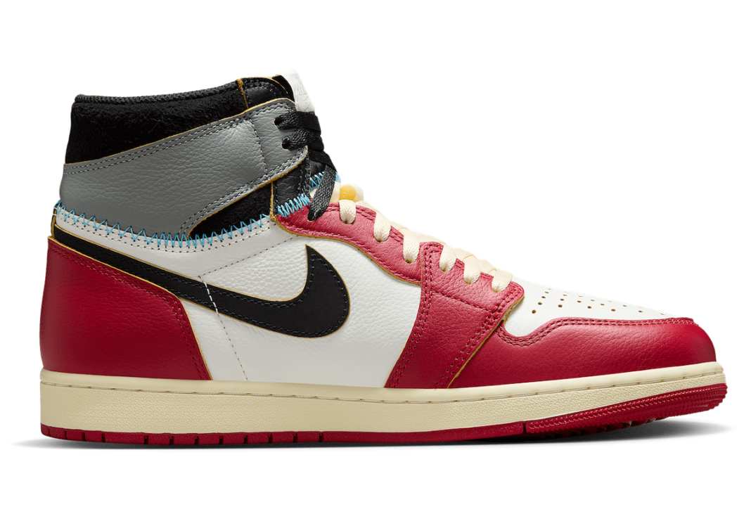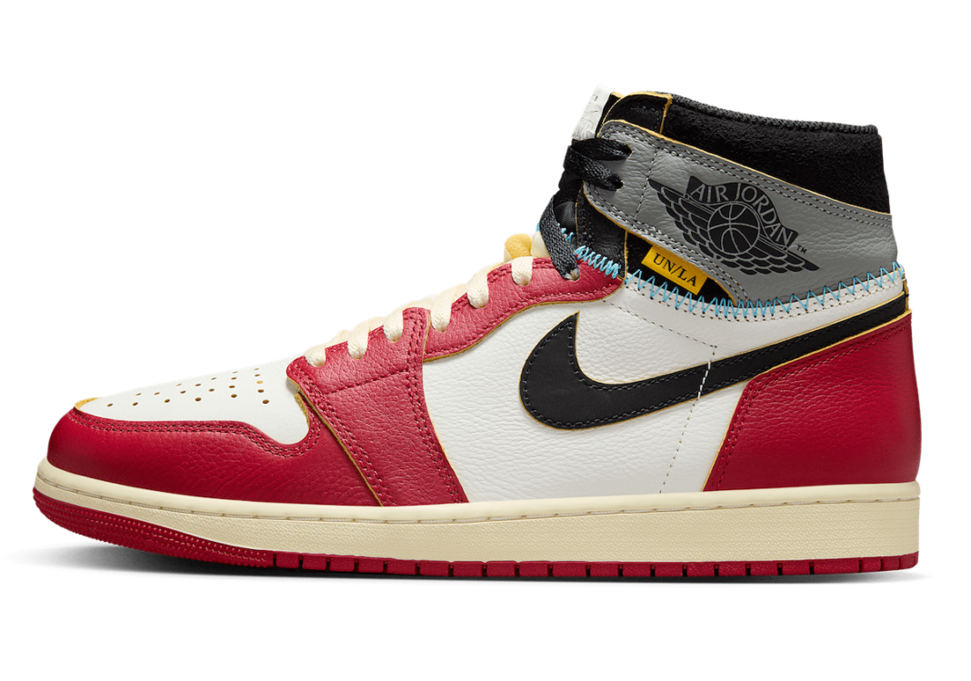 The Jordan 1 Retro High OG SP Union LA Chicago Shadow merges two of the most iconic Air Jordan 1 colorways ever—Chicago and Shadow—into one visionary creation. Union LA continues its reputation for elevated craftsmanship, blending the classic Chicago red-and-white leather base with the muted grey and black tones of the Shadow lineup. The transition is highlighted by exposed University Blue stitching, adding a hand-crafted, deconstructed feel unique to Union’s storytelling.