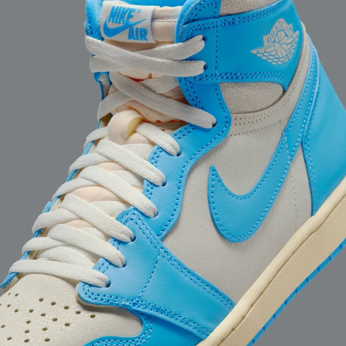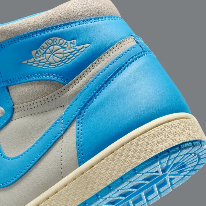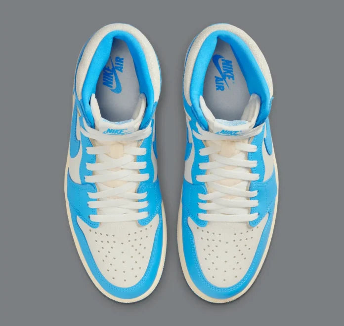 The Jordan 1 Retro High OG UNC Reimagined brings classic energy back with a vintage twist. Inspired by the University of North Carolina’s iconic blue and white colors, this release reimagines the heritage look with cracked leather overlays, an aged midsole, and carefully distressed details for that true-from-the-vault feel.