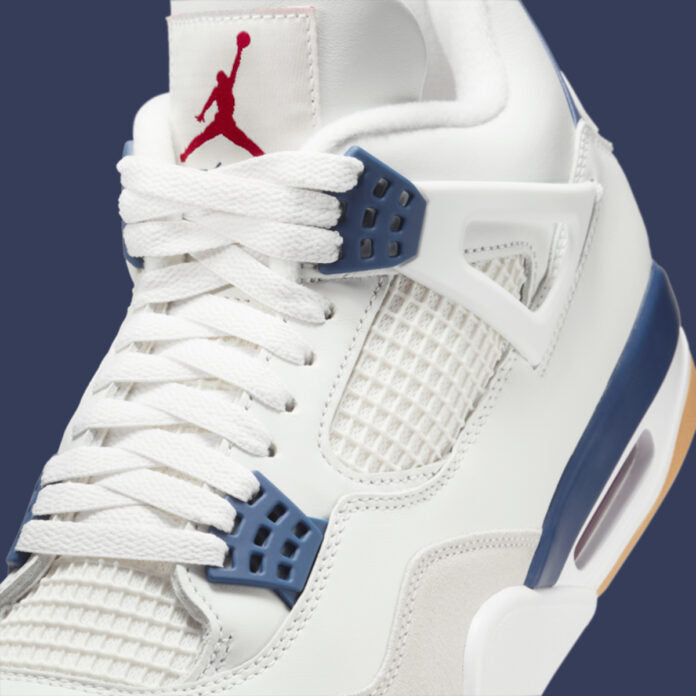 The Jordan 4 Retro SB “Navy” reimagines the classic Air Jordan 4 through the lens of skateboarding culture. Building on the success of the “Pine Green” colorway, this release replaces the green accents with deep navy tones, creating a sophisticated and versatile look that stands out both on and off the board.